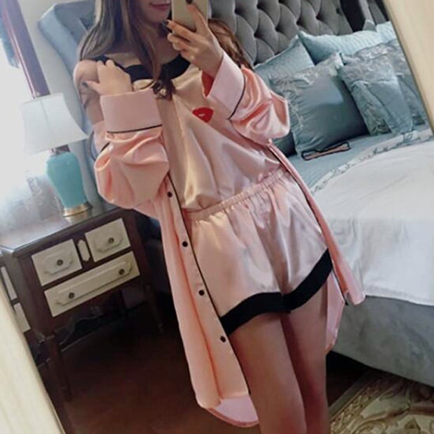 ピンク かわいい キャミソール タンクトップ インナー サテン シルク風 ルームウェア アイマスク カーディガン 上着 パジャマ アンサンブル セットアップ 0937840 色:ピンク サイズ:M,L,XL 海外からの発送のため、10日から20日ほどかかります。 562288845692AB