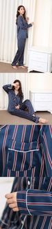 ストライプ サテン シルク風 上下 セットアップ ルームウェア パジャマ 長袖パジャマ6030538