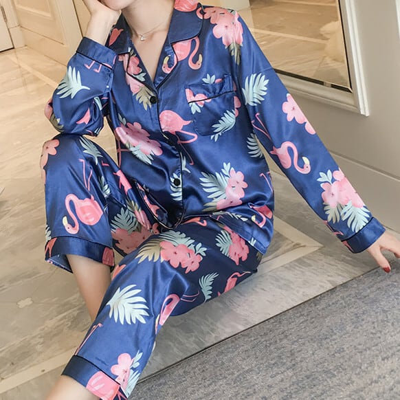 半袖 サテン シルク風 上下 セットアップ ルームウェア パジャマ 長袖パジャマ9030265