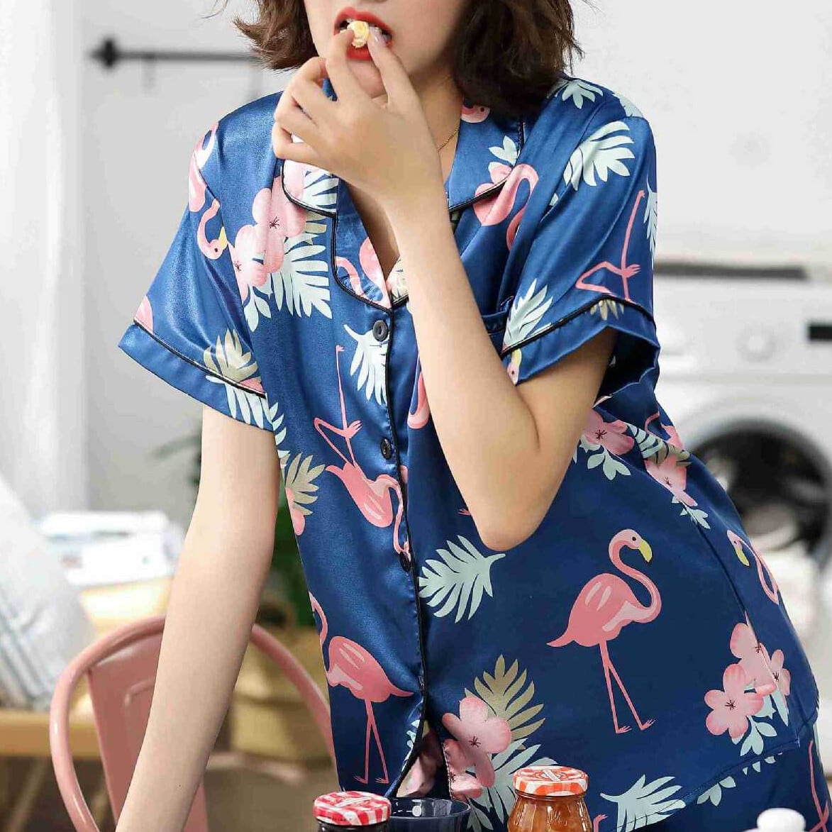 ワイシャツ サテン シルク風 上下 セットアップ ルームウェア パジャマ 長袖パジャマ2548971
